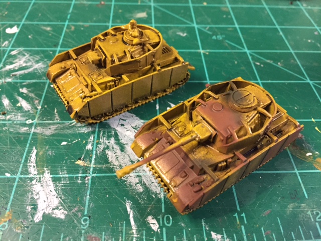 I may have mentioned that at FAll IN 2016, I purchased a batch Panzer IV H from a guy in Wally's basement. The were assembled, basecoated and given a heavy coat of weathering, which covered the basics of what I wanted. Given closer inspection, these appear to be